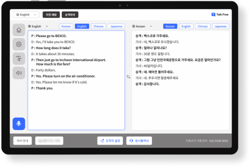동시통역으로 쉽게 대화 가능합니다.